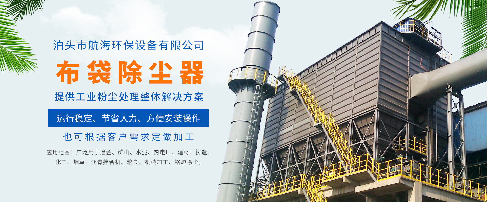 航海環(huán)保設備有限公司主要生產(chǎn):布袋除塵器,單機除塵器,旋風除塵器,脫硫除塵器,木工除塵器,鍋爐除塵器,礦山除塵器,靜電除塵器等除塵設備,以及除塵器骨架...